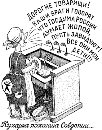 Карикатурная, имеющая название «Кухарка и кухаркины дети управляют государством», дважды судимого по ст. 89 УК РСФСР 1960 года, проигравшего в «американку». По незыблемым на зоне правилам этой игры, проигравший должен выполнить любое желание выигравшего. Скопирована в Межобластной больнице МВД в 1997 году. Ягодица.