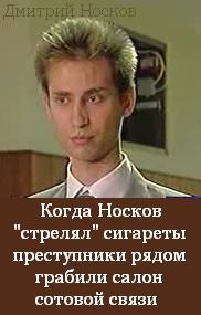 В ночь на 21 марта 2004 года студент МИФИ Носков, после прогулки у метро Кантемировская около 3 часов ночи, с целью «стрельнуть» сигарет, вернулся домой. В это же время было совершено разбойное нападение на салон сотовой связи, сторожа салона ударили по голове и связали. По каким-то признакам служба вневедомственной охраны определила злоумышленника – Носкова. Группа агрессивно настроенных автоматчиков вломилась в его квартиру, оттолкнула студента от двери, произвела несанкционированный обыск, обнаружила улики: шапочку, перчатки, след ботинка. Носкова задержали. Кстати, это дело по ограблению салона, почему-то в Нагатинской прокуратуре «утеряно».