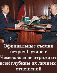 В июле 1996 года в Москву приехал и Владимир Путин — на должность заместителя главы Управления делами президента РФ, его начальником стал тогда один из самых могущественных хозяйственников эпохи Ельцина — Пал Палыч Бородин. Сергей Чемезов получил назначение в то же управление на должность начальника отдела внешних экономических связей и до марта 1997 года работал под непосредственным руководством В. Путина, который курировал вопросы собственности за рубежом. О своей работе в ведомстве сам Чемезов обмолвится лишь однажды: «Не скрою: на должность руководителя Управления внешнеэкономических связей меня рекомендовал Владимир Владимирович». Круг своих тогдашних обязанностей Сергей Чемезов обозначил так: «Пытался упорядочить использование российской загрансобственности». И вспомнил при этом, как решал проблему земельного участка в центре Иерусалима, который «Никита Хрущев обменял на апельсины». К слову, хорошие отношения с Бородиным Чемезов сохранил по сей день: Пал Палыча Бородина, как утверждают, часто можно видеть на мероприятиях «Рособоронэкспорта»...